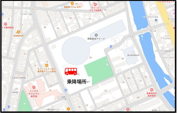 鹿児島中央駅西口 発 ⇒ 西原商会アリーナ(鹿児島アリーナ) 着