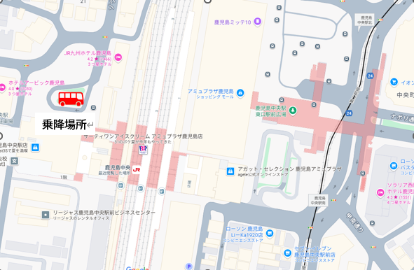 【乗降場所】鹿児島中央駅西口【薩摩切子塔前】